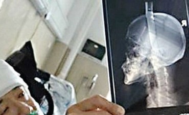 Cuchillo "cayó del cielo" y se le clavó en la cabeza